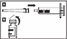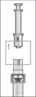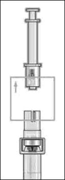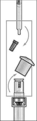 - Держа инъектор вертикально головкой вверх, вставьте выступы головки инъектора в слот флаконного адаптера.