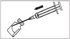 - Снимите пластиковую крышку с флакона и протрите резиновую крышку спиртом. Приготовьте препарат Зомактон, как описано в его инструкции.